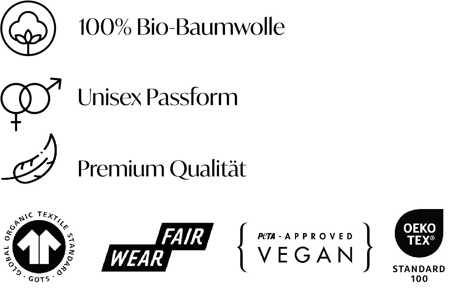 Der lässige Unisex-Schnitt und der weiche, angenehme Stoff machen dieses Shirt zum perfekten Begleiter für jeden Tag. Der Kragen ist mit einem schmalen Rippbund eingefasst. Die Drucke entstehen liebevoll in Köln im Siebdruckverfahren.